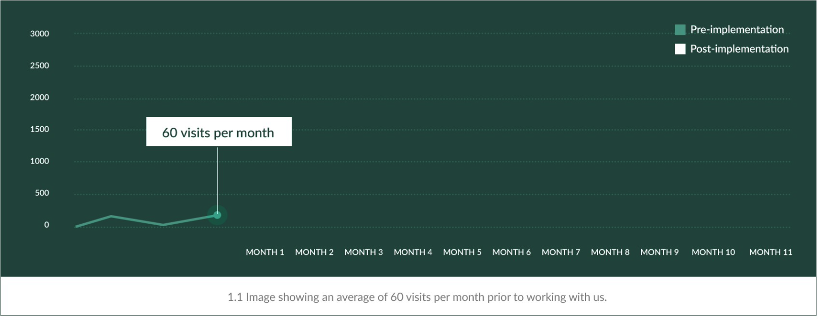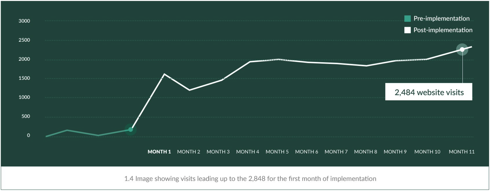 By month 11 we hit an all-time high of 2,848 visits for the month.