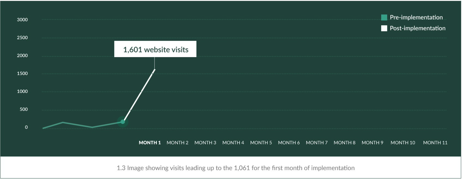 By the end of month 1, their website had 1,601 website visits, 26x their previous monthly average.
